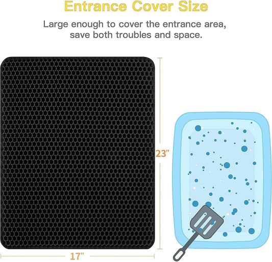 Cat Litter Mat Litter Box Mat, EVA Honeycomb Double Layer Design, Urine & Waterproof, Scatter Control Kitty Litter Mat, Less Waste, Easier to Clean,Washable, Black