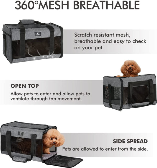 Cat Carrier Dog Carrier Pet Carrier for Small Medium Cats Dogs Puppies of 15 Lbs,Airline Approved Soft Sided Pet Travel Carrier,Dog Carriers for Small Dogs - Black Grey Purple Blue Brown
